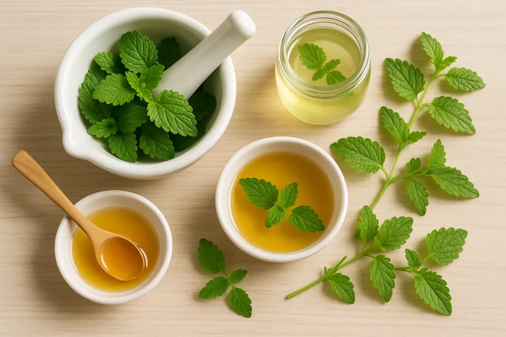 - Lemon Balm and Honey Syrup: Combine Lemon Balm with honey to make a soothing syrup. Honey adds its own antibacterial properties and can make the remedy more palatable, especially for children.