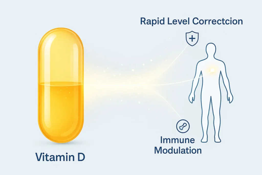 Therefore, while Vitamin D megadoses can be highly effective in rapidly increasing Vitamin D levels, they must be managed carefully. Medical professionals monitor these levels to ensure safety and effectiveness, adjusting the dosage as necessary based on regular blood tests.